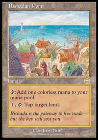 The biggest issue is finding a time to cast Wrath of God . Casting it on turn four means letting a replacement creature come down without a fight, and it will normally be Blastoderm or Jade Leech . That then requires another Wrath of God or Rout to stay in the game, and casting that one may continue to present the same problem. Casting Wrath on turn six allows UU to be held back, but that requires the real original Counterspell , which is often required on turn two or three and often isn't drawn, and then there's this small problem called Rishadan Port . This is why Tsabo's Web is a good answer but not a complete one. Tapping that fifth land on this crucial turn means Counterspell is no longer castable, even though that's all Rishadan Port will ever get to do this game. If Tsabo's Web isn't on the board or there are multiple Ports, the deck may need seven, eight or even nine lands to pull off a Wrath safely. Many games are settled early by Dust Bowl and/or Rishadan Port locking the opponent out of the mana needed to stay in the game.