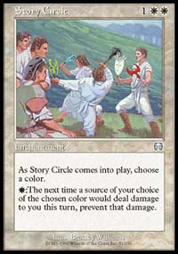 So the trick was getting him to choose the Wrath over the Story Circle without giving away that I wanted him to take the Wrath. One secret is that most people who use Fact or Fiction overvalue Fact or Fiction , because they don't play against players who know how to divide the piles properly often enough. So if Fact or Fiction is one of the five cards, it can be used to make one pile appear better than it is. That's what I decided to do: Put the Fact or Fiction with the Wrath of God . That looked to him like a better pile than getting Absorb and Counterspell , but it also looked like I was attempting to keep the division "fair." Because of that, he took the wrong pile, Jade Leech hit the table and he couldn't find another Wrath in time.